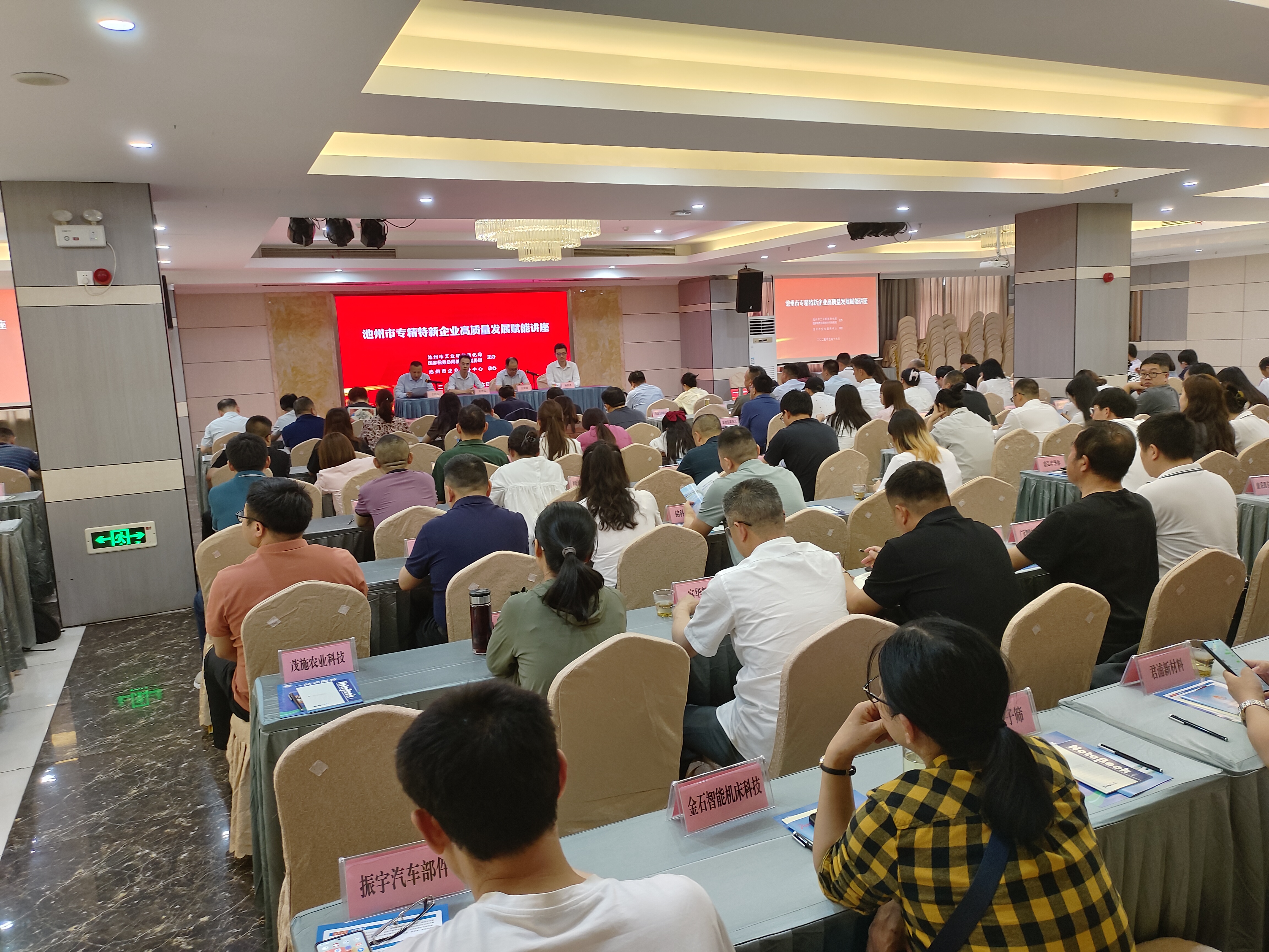 5月16日,池州市专精特新高质量发展讲座活动在天水湾大酒店三楼国宾厅成功举办,此次活动由市工信局、税务局主办,市企业服务中心承办,吸引了约120家规模以上企业的负责同志参加,现场气氛热烈,反响强烈。