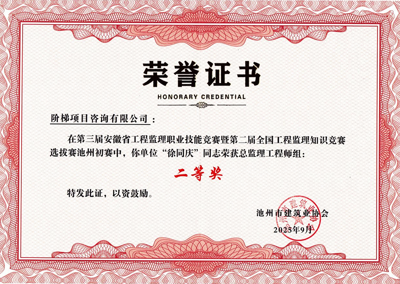总监理工程师组:徐同庆、章必满协同作战,分别荣获二等奖,王俊、高晓洪紧随其后摘得三等奖,展现了项目统筹管理的高水平;